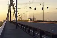 - Міст має 2 залізничні колії і шість смуг руху автотранспорту (по три в кожну сторону).