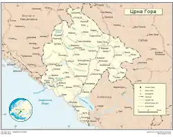 та у міжміському сполученні діє громадський транспорт пасажирських перевезень. Площа країни дорівнює 13 812 км² (162-ге місце у світі)[1]. Форма території країни — відносно компактна ромбовида; максимальна дистанція з півночі на південь — 190 км, зі сходу на захід — 155 км[2][3]. Географічне положення Чорногорії дозволяє країні контролювати транспортні шляхи між країнами Балканського півострова; вихід до вод Світового океану для Косова і Сербії[4].