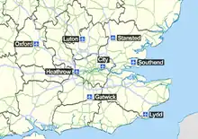 Лондон — місто, що обслуговується аеропортами найкраще у світі з майже 150 млн пасажирами, що користуються його шістьма міжнародними аеропортами на 2005 рік. За розміром (від більшого до меншого) — аеропорти Хітроу, Гатвік, Станстед, Лутон, Лондон-Сіті; та Саутенд.
