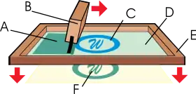 Відбиток створюється в результаті продавлювання фарби крізь друкувальні елементи форми на задруковуваний матеріал у процесі руху ракеля по формі. Трафаретний друк принципово відрізняється від основних способів друку: високого, плоского, глибокого.