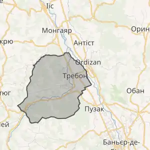 - Розташування муніципалітету Требон на мапі Франції та сусідні муніципалітети