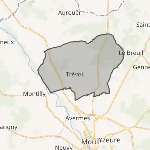 - Розташування муніципалітету Треволь на мапі Франції та сусідні муніципалітети