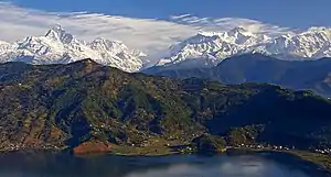 - Гірські вершини: Дхаулагірі (8167 м), Манаслу (8156 м), Аннапурна II (7939 м), Аннапурна III (7555 м), Гангапурна (7455 м), пік Тілічо (7134 м), пік Тілічо (7134 м), Нілгірі (7061 м), Чулу (6584 м). Головну вершину масиву Аннапурна — Аннапурна I (8091 м) — видно з гори Пун Хілл на заключній частині повного маршруту, а при проходженні треку Бесісахар — Джомсом Аннапурну I можна спостерігати з літака під час авіаперельоту Джомсом — Покхара.