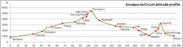 «Трек навколо Аннапурни» вважається одним із найбільш мальовничих туристичних маршрутів і має світову популярність. Щорічно його відвідують тисячі любителів гірського туризму з різних країн[1][2]. Довжина повного маршруту — 211 км, загальна тривалість — близько 20 днів, перепад висот — від 820 м (село Бесісахар) до 5416 м (перевал Торонг Ла).