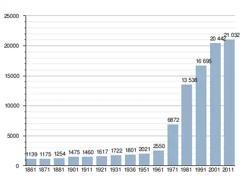 Станом на 31 грудня 2014 року в муніципалітеті офіційно проживало 170 іноземців з 41 країни, серед них 60 громадян країн Євросоюзу та 9 громадян України.[4]