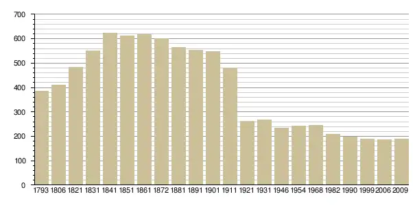 Динаміка населення (base Cassini de l'EHESS pour les nombres retenus jusque 1962[3], base Insee à partir de 1968 (population sans doubles comptes puis population municipale à partir de 2006)[4] · [5] ):