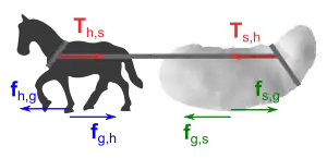 Нехай кінь, запряжений у віз, тягне його з деякою силою вперед. Але, згідно з 3-м законом Ньютона, існує сила протидії, рівна їй за величиною і спрямована назад. Оскільки в сумі обидві сили дають нуль, віз ніколи не зможе зрушити з місця.