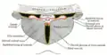 Діаграма, що показує позиції три основні субарахноїдальні цистерни.