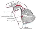Вінцевий розтин мозку через проміжні маса третього шлуночка.
