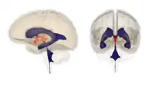 Кілька досліджень знайшли докази розширення шлуночків при великій депресії, зокрема, розширення третього шлуночка.[3][4][5] ці спостереження інтерпретуються як вказівку на загибель нервової тканини в ділянках мозку, прилеглих до розширених шлуночків.[6][7][8]