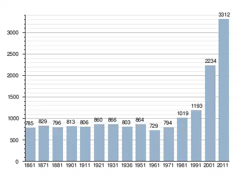 Станом на 31 грудня 2014 року в муніципалітеті офіційно проживало 215 іноземців з 35 країн, серед них 90 громадян країн Євросоюзу та 11 громадян України.[4]