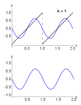 В загальних умовах, періодичну функцію можна виразити у вигляді суми синусних або косинусних хвиль за допомогою Ряду Фур'є.[3] Позначивши синусні або косинусні базисні функції як , розкладання періодичної функції буде мати наступну форму: