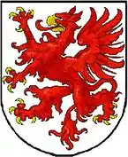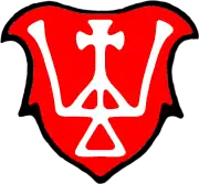- Корогва (прапор), поділений на три частини (Тілезіус, Салєт).