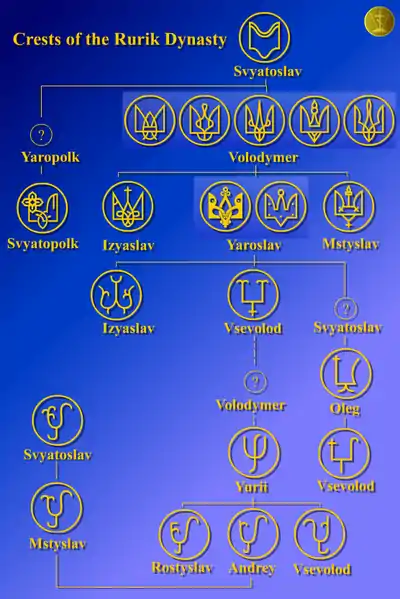 У Київській Русі Тризуб був знаком князів Рюриковичів, але точаться суперечки на тему, чи був Тризуб знаком лише Рюриковичів, або ж давнім знаком слов'ян.