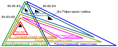 - Якщо всі кути трикутника менші від , то трикутник називають гострокутним. Рівносторонній трикутник є гострокутним, але не всі гострокутні трикутники рівносторонні.