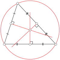 Серединний перпендикуляр трикутника — це перпендикуляр, опущений на середину сторони трикутника. Три серединні перпендикуляри перетинаються в одній точці, яка є центром описаного кола. Діаметр описаного кола можна визначити з теореми синусів.