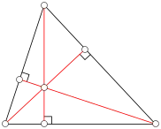 Висота трикутника — це пряма, проведена з вершини перпендикулярно до протилежної сторони або до продовження протилежної сторони. Ця сторона називається основою трикутника. Точка перетину сторони і перпендикуляра називається основою перпендикуляра. Довжина висоти — це відстань від вершини до основи трикутника. Три висоти перетинаються в одній точці, яка називається ортоцентром трикутника. Ортоцентр лежить всередині трикутника (і відповідно всі основи перпендикулярів лежать всередині трикутника) тоді і тільки тоді, якщо трикутник не тупокутний (у ньому жоден з внутрішніх кутів не більший від прямого кута). Див. також ортоцентрична система