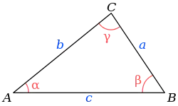 Теорема синусів, чи правило синусів,[7] стверджує що відношення довжин сторін до синусів відповідних протилежних кутів є величина стала, отже