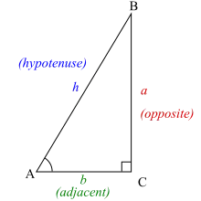 У прямокутних трикутниках тригонометричні співвідношення — синус, косинус і тангенс можуть використовуватись, щоб знайти невідомі кути чи невідомі довжини сторін. Сторони трикутника позначають так: