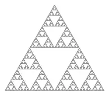 - Шаблон отриманий фарбуванням лише непарних чисел у трикутнику Паскаля дуже нагадує фрактал відомий як трикутник Серпінського. Ця схожість стає все більш точною з додаванням нових рядків; при переході до границі, коли кількість рядків наближається до нескінченності, результовний шаблон є трикутником Серпінського.[5] Загальніше, числа можна розфарбовувати різноманітно, відповідно до того чи діляться вони на 3, 4 і т.д.; це дає подібні шаблони.