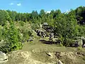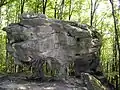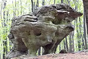 - Печера — грот язичницького періоду, що є своєрідною усипальницею дохристиянського періоду. Розташована поруч із кам'яним останцем — мегалітом за назвою «Лежачий пес». У грудні 2015 року відбулось розчищення та обстеження гроту, розміри якого сягають 5—6 м³,[3] було виявлено людське поховання — останки п'ятьох людей, кістки яких частково обпалені. Також виявлено фрагменти кераміки періоду Київської Русі. Печеру та вхід до неї розчищено та облаштовано для безпечного доступу відвідувачів. Цікавим цей грот є тим, що тут можна побачити сталактити — мінеральні утворення у вигляді химерних форм, які виступають зі стелі гроту.