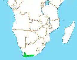 Ендемік Південно-Африканської Республіки. Поширений на півдні провінції Західний Кейп. Мешкає у гірському фінбоші. За оцінками, загальна популяція виду не перевищує 1000 птахів.