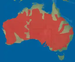 Ендемік Австралії. Трапляється в посушливи та напівпосушливих районах на більшій частині материка. Відсутній у Тасманії.