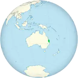 Ендемік Австралії. Поширений на південному сході Квінсленду та на півночі Нового Південного Уельсу. Трапляється у світлих вологих лісах.