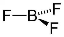 Трифторид бору — це бінарна неорганічна сполука з хімічною формулою . Фторид бору є токсичним безбарвним газом з різким запахом, димить на повітрі при взаємодії з вологою. є кислотою Льюїса та універсальним будівельним блоком в органічному синтезі. Фторид бору має тригональну планарну структуру. симетрія підтверджується теорією ВЕПВО. Фторид бору не має дипольного моменту через високу симетрію даної сполуки. є ізоелектронним до карбонатного аніону.