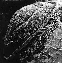 ![]() Електронна мікрофотографія триходин із зябер лобаня (Mugil cephalus) | ||||||||||||||||||