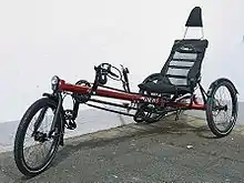 - велотрайк — триколісний шосейний велосипед, на якому велосипедист розташовується у положенні лежачи