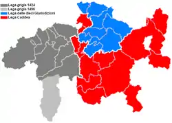 Ще до 1440 року Ленвенберг, Тузіс, Чаппіна і Гайнценберг приєдналися до Ліги, незважаючи на те, що граф Верденберг-Зарганс заборонив їм це робити. У 1441 році приєдналось абатство Кацис; в 1480 році райони Мезокко і Соацца в Мізоксі, а в 1496 р. Джан Джакомо Тривульціо допомагав об'єднанню решти графства Мізокс з районами Мізокс і Каланка.