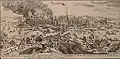 Площа перед палацом в 1670, вид зі сходу. Люди зображені меншими, ніж вони виглядають в реальності, і будівлі здаються більшими своїх реальних розмірів.