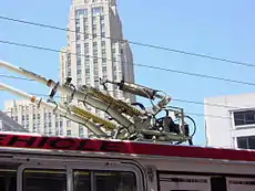 У тому ж році в США бельгієць Шарль Ван Депуле запатентував «тролейбусний ролик (коліщатко)» — струмоприймач у вигляді штанги з роликом на кінці. Більш надійний штанговий струмоприймач винайшов і 1888 року впровадив у трамвайній мережі Френк Спрейг (Frank J. Sprague). Але на тролейбус штанговий струмоприймач встановив лише 1909 року Макс Шиманн (Max Schiemann), і його система з численними удосконаленнями дійшла до нашого часу[4].