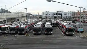 Перший тролейбусний маршрут відкрився в місті 6 жовтня 1935 року, він належав Залізничній компанії Маркет-Стріт. У 1941 році власний тролейбусний маршрут відкрила і MUNI, яка вже через три роки придбала свого конкурента об'єднавши тролейбусну мережу міста. У наступні десятиліття тролейбуси поступово замінювали собою трамвайні лінії. Але коли у 1960-х в Сполучених Штатах почалася масова ліквідація тролейбусних мереж, у Сан-Франциско тролейбус зберігся завдяки дуже складному рельефу. На деяких вулицях міста похил був дуже крутим, а тролейбус виявився краще пристосованим до пересування по крутих пагорбах міста.