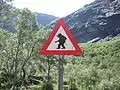 Дорожній знак «Обережно, каменепад!» із зображенням троля
