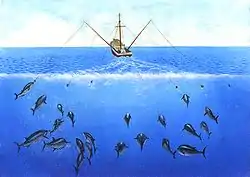 У сучасному англійському застосуванні «троллінг» може описувати риболовну техніку з повільного перетягування приманки або зачепленого на рухомому човні гака,[5] тоді як «траловка» описує загалом комерційний акт про перетягування риболовної сітки — трала (невід), який спускають з риболовного судна — траулера — у воду на велику глибину і на канатах він тягнеться за судном майже по самому дні.