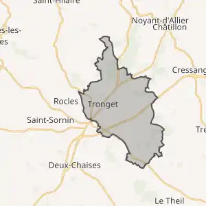 - Розташування муніципалітету Тронже на мапі Франції та сусідні муніципалітети