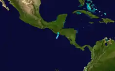 ![]() Мапа руху та інтенсивності шторму Аманда за шкалою Саффіра-Сімпсона. | ||||