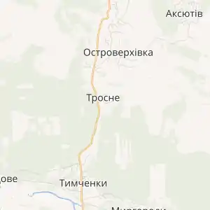 Село Тросне знаходиться на відстані 3,5 км від річки Мжа (лівий берег), примикає до села Островерхівка, на відстані 3 км розташоване село Тимченки. Село примикає до великих лісових масивів ліс Малий Бір і ліс Великий Бір (сосна).