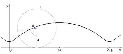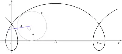 Будується як траєкторія точки, жорстко пов'язаної з колом радіуса , що котиться без ковзання по прямій (у наведеному прикладі такою прямою є горизонтальна вісь координат). Відстань точки від центру кола — .