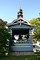 Пізніше отець Іона доклав зусиль для побудови кам'яної дзвіниці, але весною 1897 року сильно захворів, але згодом одужав. Старець, зібравши 100 тис. рублів, довершує будівництво величезного кам'яного корпусу. Також, він збирає ще 200 тисяч рублів на кам'яну дзвіницю і отримує від імператора Миколи II затвердження її проекту. Дзвіниця згідно проекту Миколаєва по своїх масштабах повинна була перевершити Велику дзвіницю Києво-Печерської лаври. ЇЇ будівництво почалося 27 червня 1903 року, але, довівши перший ярус до половини, його зведення призупинили для усадки. Також, була побудована вежа з годинником, виготовленим 1858 року у столиці Франції Парижі. Зараз це найстаріші вежові часи Києва.