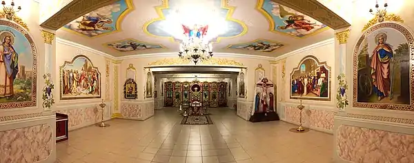 Свято-Троїцький храм має чотири престоли: центральний, освячений на честь Живоначальної Трійці, лівий-на честь Преподобного Серафима Саровського, правий-на честь Святого Великомученика Георгія Побідоносця, підземний храм- на честь Святого Великомученика Димитрія Солунського.