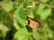 Через певний час листок починає засихати, але всередині він лишається зеленим і цілком придатним для харчування личинки.