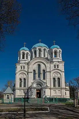 За архітектурою церква дуже нагадує Володимирський собор у Києві. Куполи храму напівсферичні та приплюснуті. Центральний барабан багатовіконний. Кутові барабани повторюють форму центрального, але мають наскрізні дзвіниці.