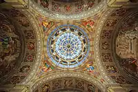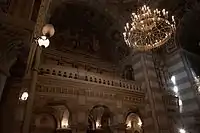 У вирішенні інтер'єру поєднуються принципи глибинного і висотного розкриття внутрішнього простору. Світловий барабан за допомогою арок і вітрил спирається на чотири міцні пілони. Пучкові колони відокремлюють центральну наву від вузьких бічних.