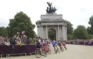 Під час велосипедної гонки у відрив пішов Алістер Браунлі, його переслідували брат Джонатан і іспанець Гомес. Далі йшла основна група, до складу якої входило 22 спортсмени. Джонатан Браунлі був оштрафований, доданий час вартував його срібної медаді[9]. Під час змагання Джонатан Браунлі тепловий удар і після фінішу йому надали необхідну медичну допомогу[10].
