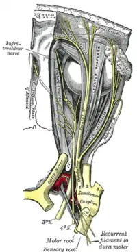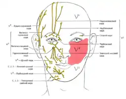 | Трійчастий нерв (виділений жовтим) | |