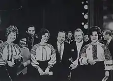 Сестри Байко (Марія, Ніна, Даніїла), концертмейстер Лагола-Баб'як Тетяна, А. Авдієвський, А. Кушніренко, С. Турчак у кулуарах концертної зали (1973)