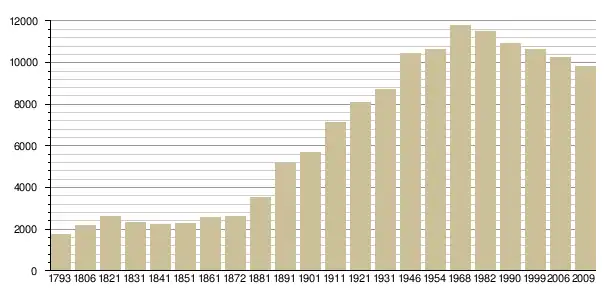 - : Population depuis le recensement de 1968, наведено за французькою вікіпедією